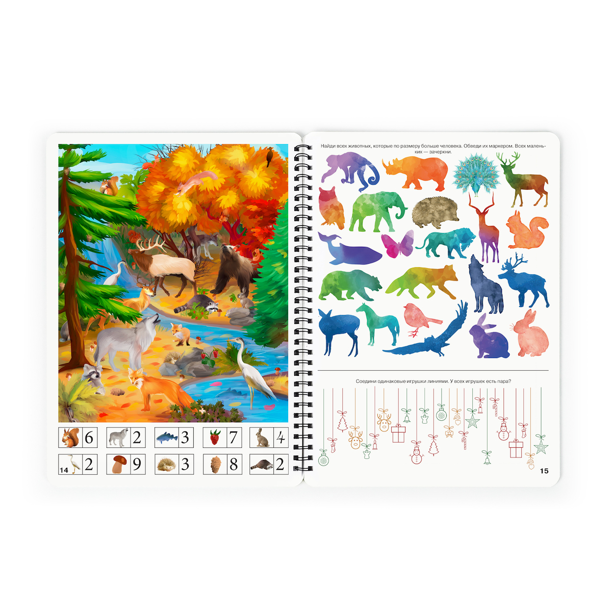 Ребёнку предстоит найти заданное количество предметов на странице, рассмотреть картинки-небылицы, отыскать все отличия, выделить лишний предмет из группы, соединить одинаковое и зачеркнуть разное. Сюжеты точно не оставят малыша равнодушным: отправимся на стройку, соберём урожай, сходим в зоопарк, отметим Новый год, поплаваем на пиратском корабле и побываем в других удивительных местах!