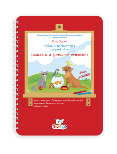 Смотреть обзорыБлокнот, предназначен для занятий с детьми от двух лет. Задания направлены на классификацию, обобщение и вычленение общих и отличительных признаков у питомцев и домашних животных. Блокнот можно использовать в качестве дополнительного пособия при освоении программы детского сада, направленной на развитие мышления и обобщения во второй младшей и средней группах.